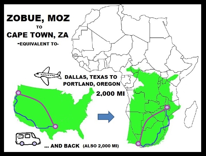 from Lilongwe to Cape Town, renting a car, and making our way home over the